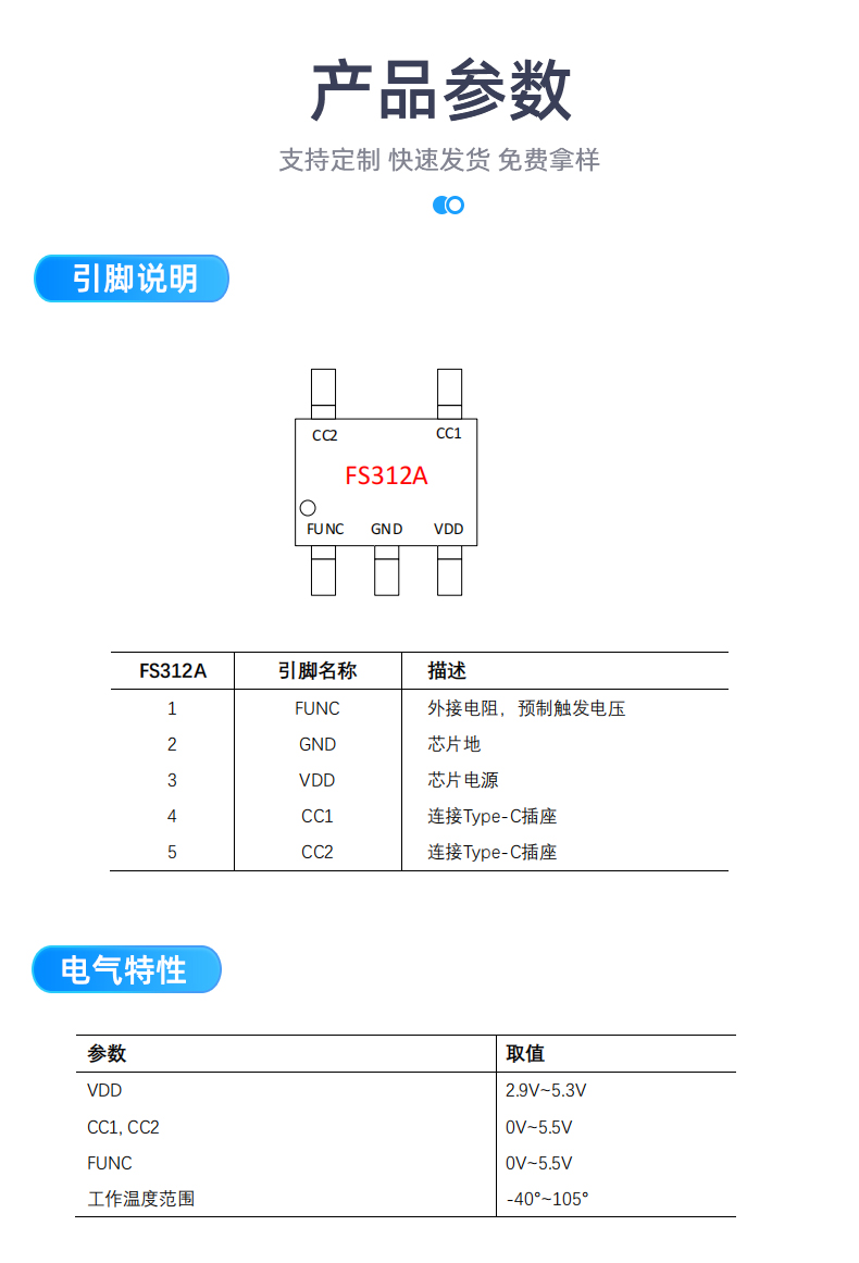 Type-C PD快充协议电压诱骗芯片,PD取电芯片 FS312A