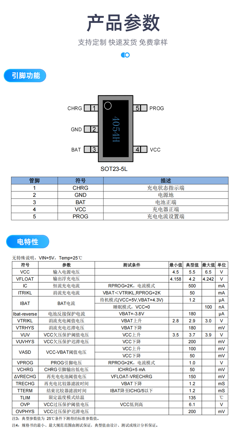45V高耐压单节锂电池充电芯片 500mA充电电流 广州XR4054HP