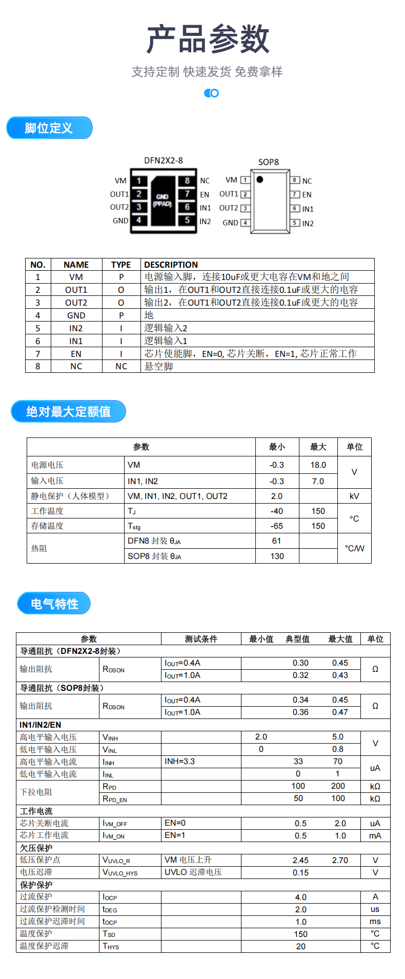 单通道 2.7-15.0V 持续电流 1.8A H桥驱动芯片 SA8320A